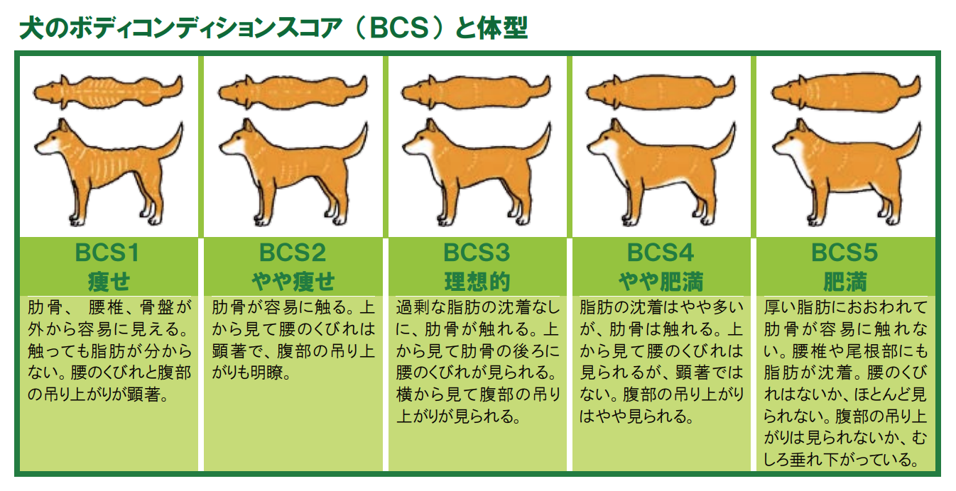 犬の理想体型は、「ボディコンディションスコア(BCS)」という基準で判断されます。