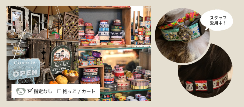その中で気に入ったリボンでワンちゃんのサイズに合わせて首輪やリードを作ってくれるんです◎