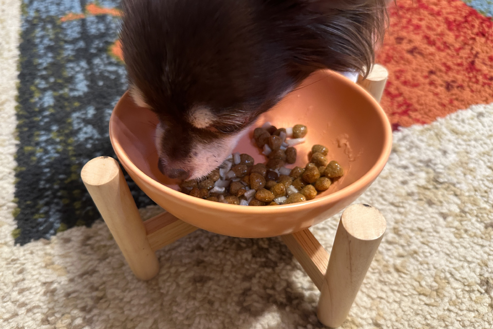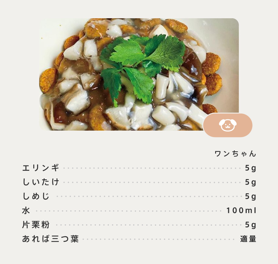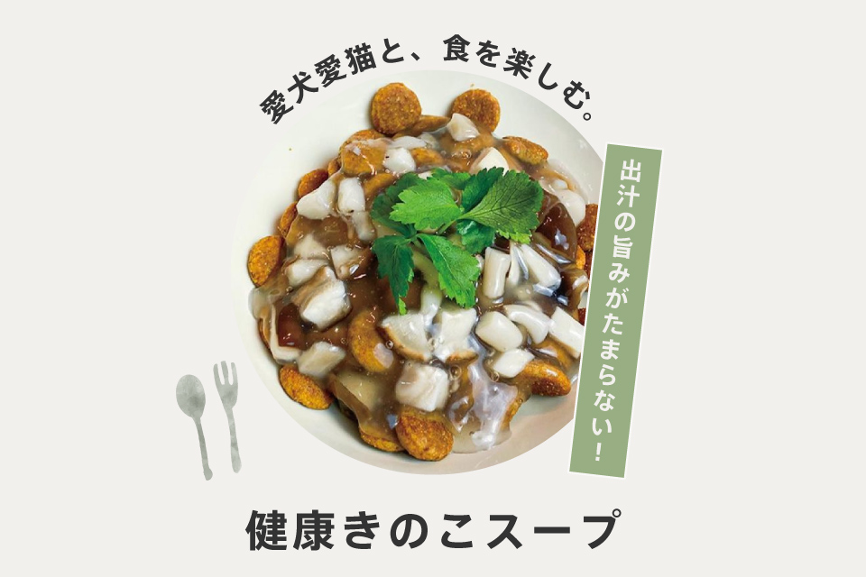 スープにとろみをつけることで、きのことドライフード が絡み、いつもより満腹感に。